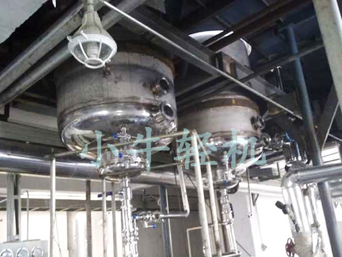 中央循環(huán)結(jié)晶器的蒸發(fā)室是加熱室上部的圓筒體,溶液經(jīng)加熱后汽化,必須具備一定高度和空間,使汽液進(jìn)行分離,二次蒸汽上升,溶液經(jīng)中央循環(huán)管下降,這樣保證溶液不斷循環(huán)和濃縮。蒸發(fā)室的高度,主要根據(jù)防止料液被二次蒸汽夾帶的上升速度所決定,同時考慮清洗、維修加熱管的需要,一般為加熱管長度的1.1~1.5倍。蒸發(fā)室設(shè)有視鏡、人孔、洗水、照明、儀表、取樣等裝置,頂部有捕集器裝置,主要使二次蒸汽可能夾帶的汁液進(jìn)行分離,保證二次蒸汽的潔凈,有利于提高次一效濃縮鍋的傳熱效果,也減少料液的損失,頂部與二次蒸汽排出管相連。